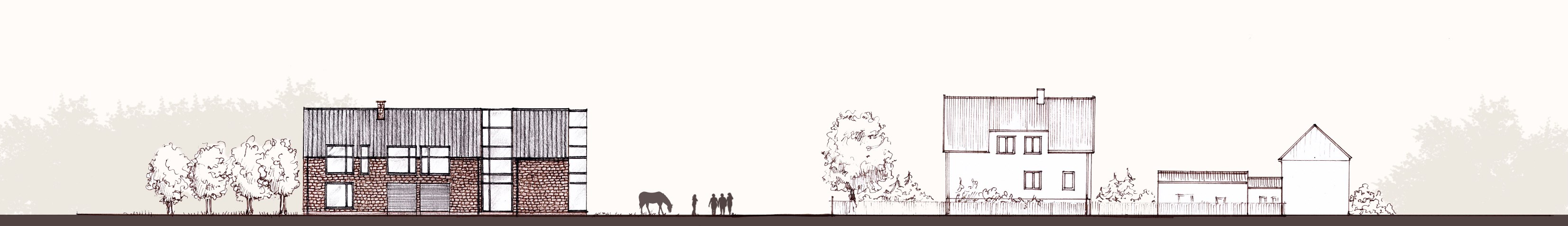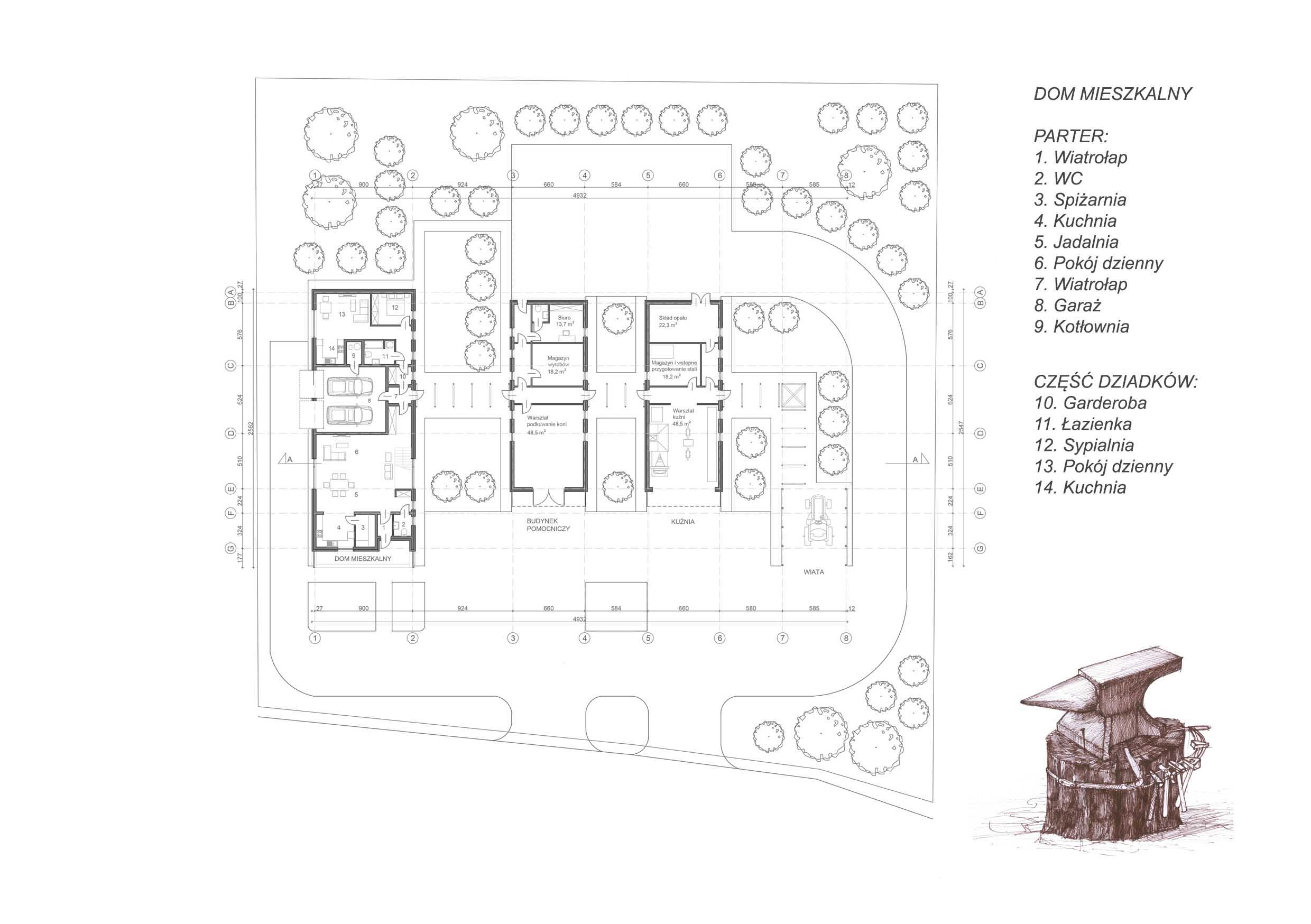 Główną ideą projektu było stworzenie prostej i funkcjonalnej przestrzeni, aby rodzina mogła się swobodnie poruszać w łączonej przestrzeni praca + dom. Dom jednorodzinny zaprojektowany został zarówno dla młodszego pokolenia jak i dziadków. Inspiracją do stworzenia detalu architektonicznego była zastana zabudowa we wsi Gocław oraz średniowieczne kuźnie.