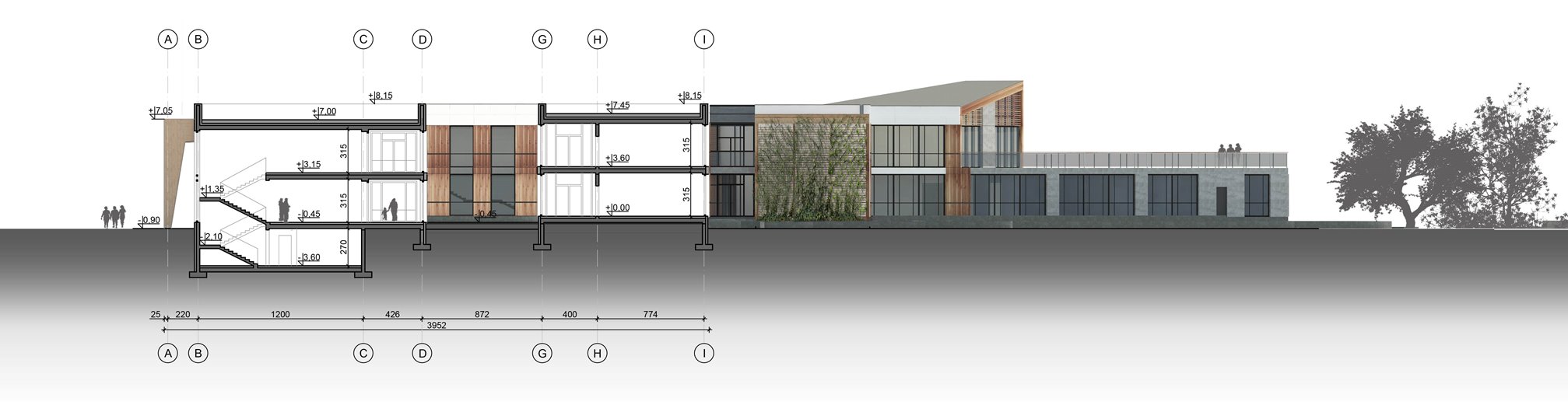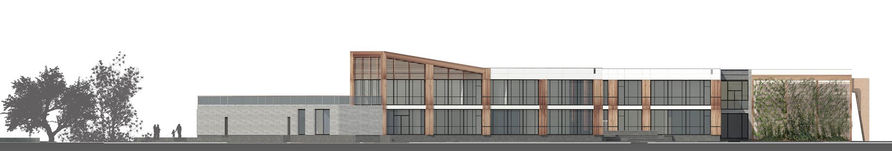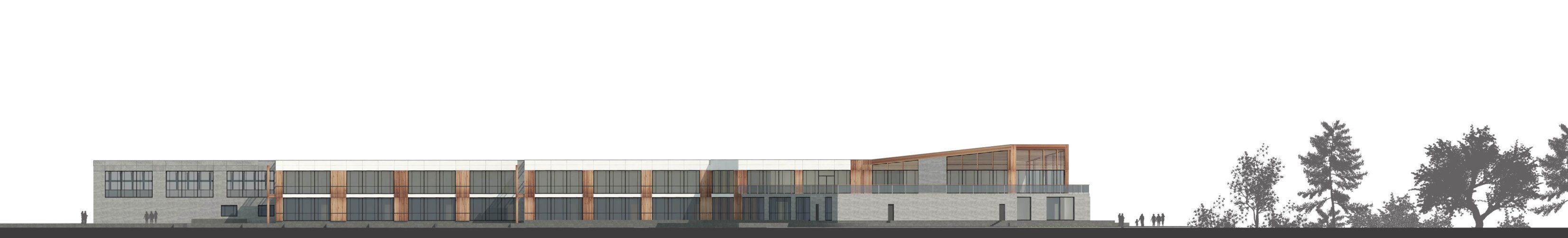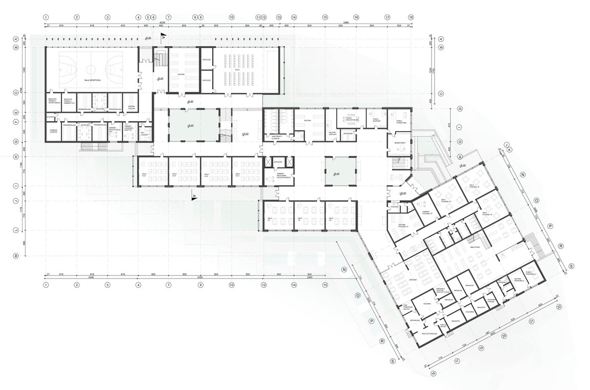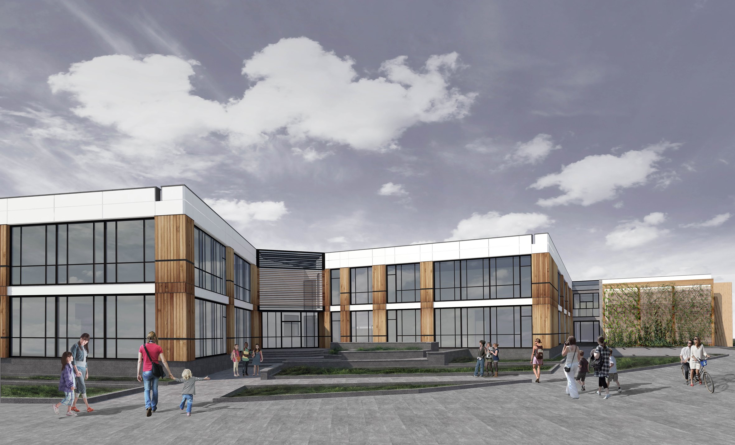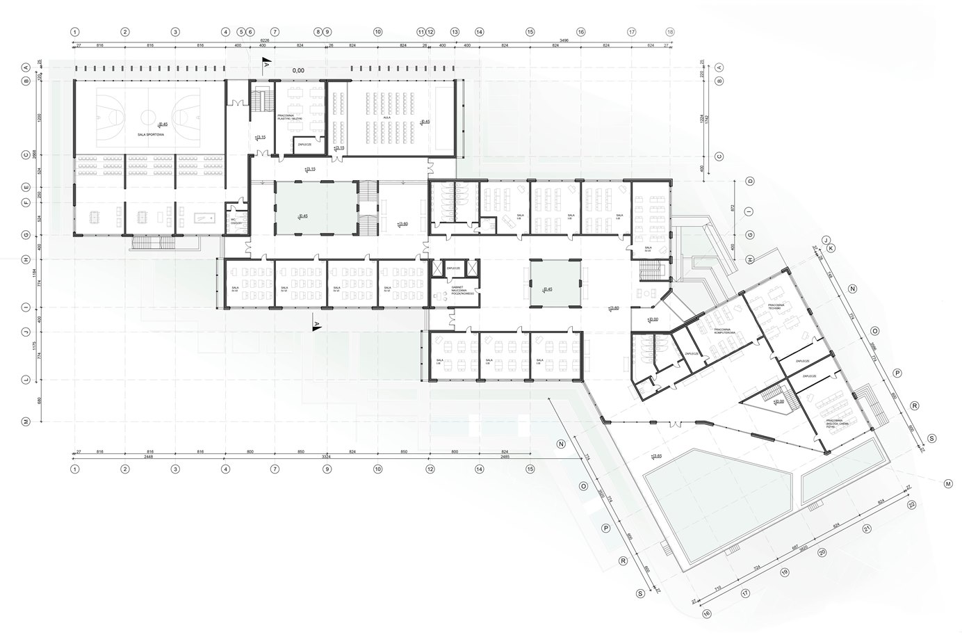 Ukształtowanie bryły budynku głównie wynikało z podłużnej działki, jej łukowej krawędzi oraz poszczególnych elementów szkoły. Proces kształtowania formy zaczyna się od prostokątnych segmentów, które należy wpasować w działkę. Szkoła Podstawowa została zaprojektowana dla klas 0 oraz I-VI, obejmująca 432 uczniów. Projekt budynku charakteryzuje się modularnością konstrukcji, aby był niski koszt budowy. Znajdziemy tu wewnętrzne dziedzińce, które dostarczają światło do wnętrza szkoły, zielony dach oraz „zielone ściany”. Zespół żywienia, biblioteka oraz zespół sportowy może funkcjonować niezależnie od reszty szkoły. Klin powstały w planie powstał jako element zapraszający do środka, jednocześnie stwarzając bezpieczny plac przed zadaszonym wejściem dla uczniów. Pomieszczenia, sale lekcyjne zostały umiejscowione tak aby miały prawidłowy dostęp do światła dziennego w odpowiednich porach dnia.