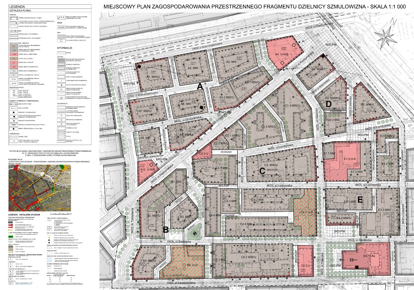 Projekt urbanistyczny zakłada poprawę stanu istniejącego, ulepszenie komunikacji na terenie dzielnicy Szmulowizna oraz zachowanie istniejących terenów zielonych. Stan istniejący został uzupełniony o nową zabudowę, tworząc pierzeje uliczne. Aby podkreślić ważność dróg wprowadzono w pierzejach usługi na parterze. Nowo-projektowana zieleń wyznacza granice pomiędzy kwartałami, łączy główne przestrzenie publiczne oraz podkreśla kierunek ruchu. Przestrzenie publiczne są podkreślone dominantami przestrzennymi, usługami w parterze, a także pierzejami ulicznymi.