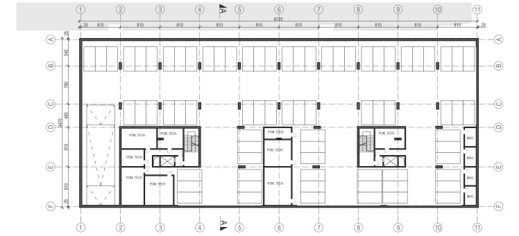 Uzupełniania zabudowy zostały wprowadzone tak aby nie zaburzały ładu przestrzennego historycznego założenia osi muranowskich. Budynek o funkcji hotelowej o 4 kondygnacjach ma podobne gabaryty do budynku przy ul. Nowolipie 25A oraz znajduję się na jednej z głównych osi muranowskich. Wspólne podwórka zostały wzbogacone o place rekreacyjne wraz małą architekturą.