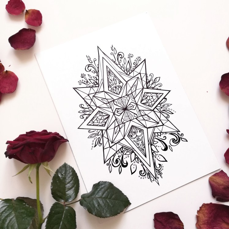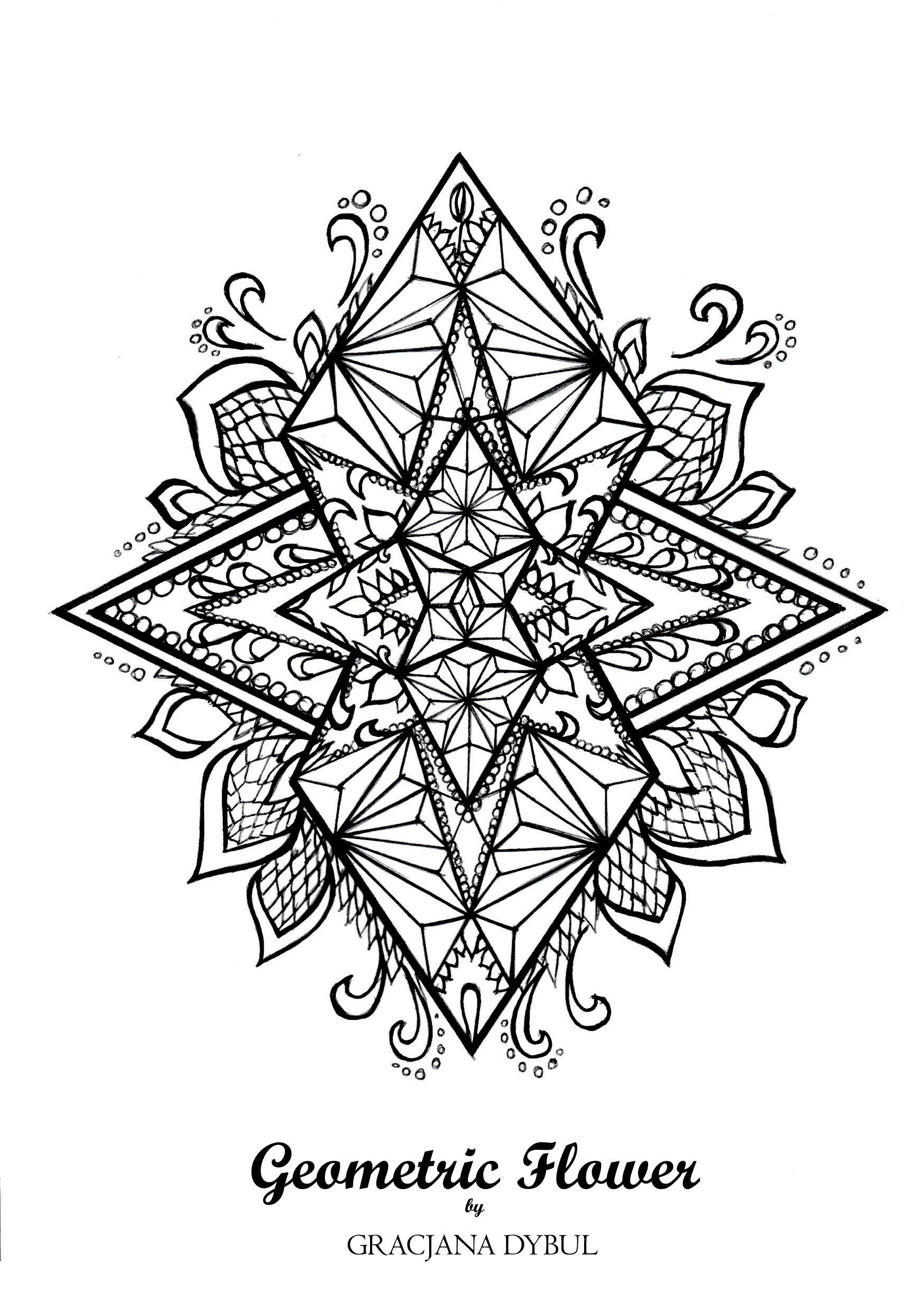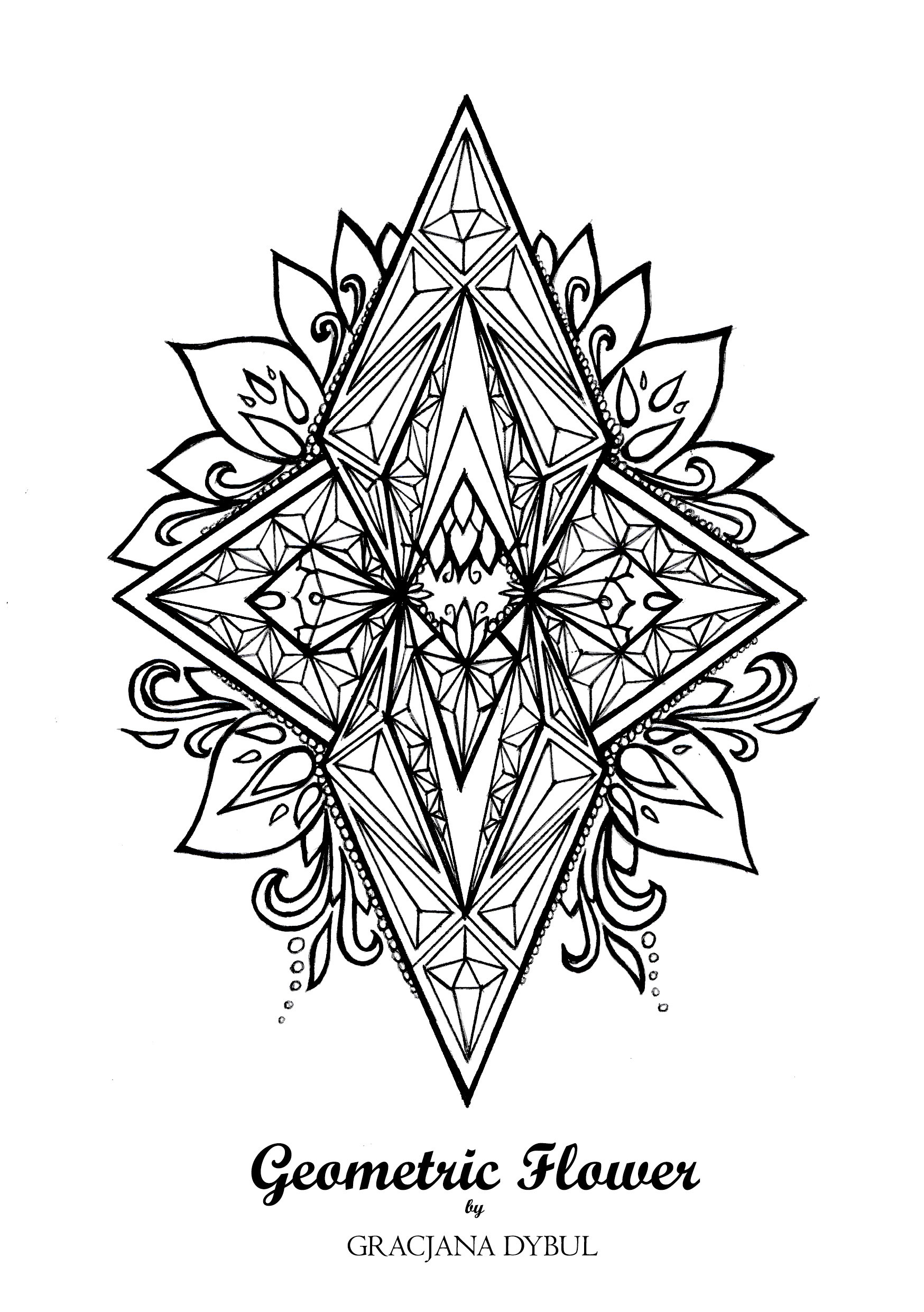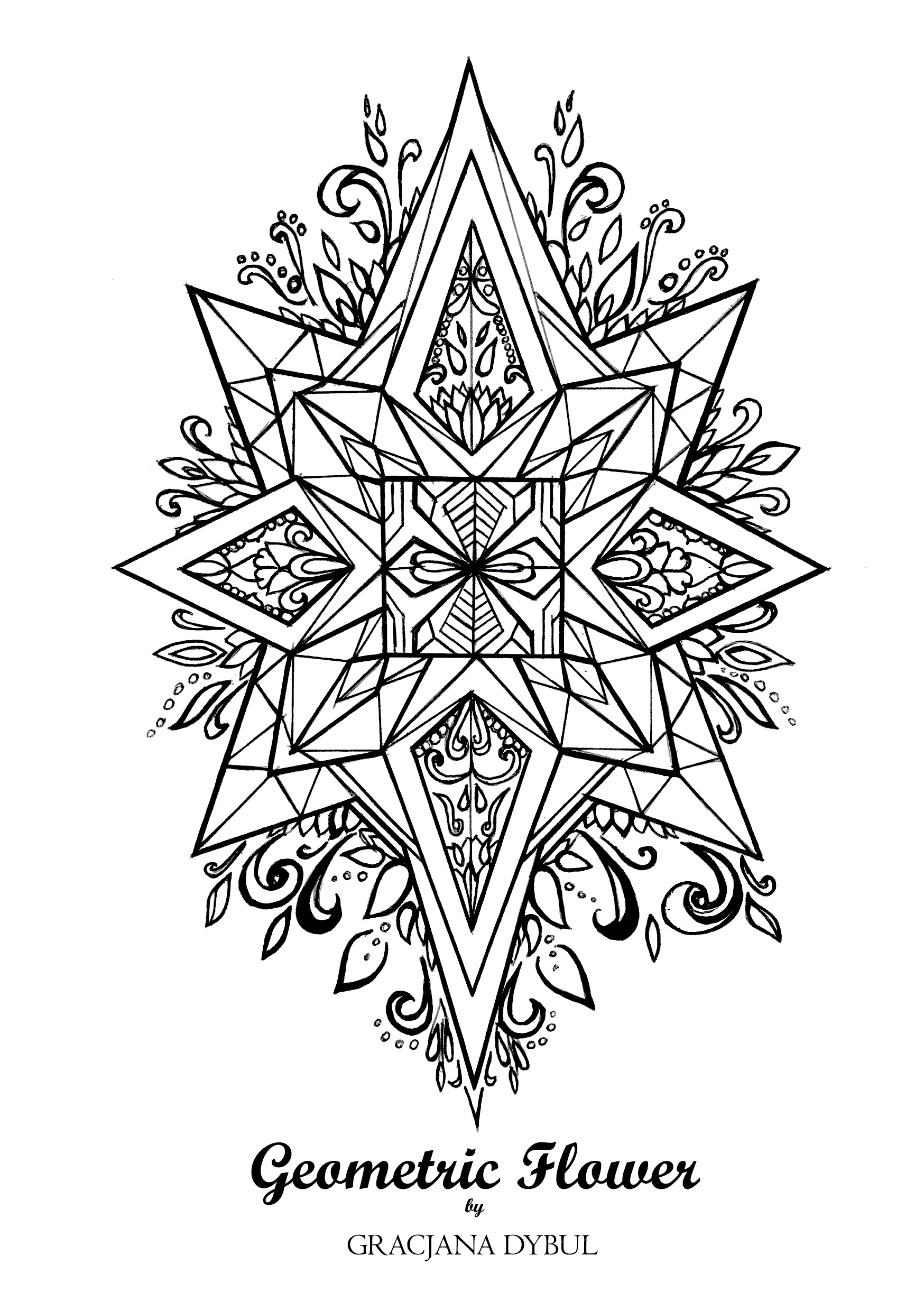 Przedstawiam wam serię kolorowanek Geometric Flower. Rysunki łączą ze sobą geometryczne kształty z organicznymi roślinnymi elementami.