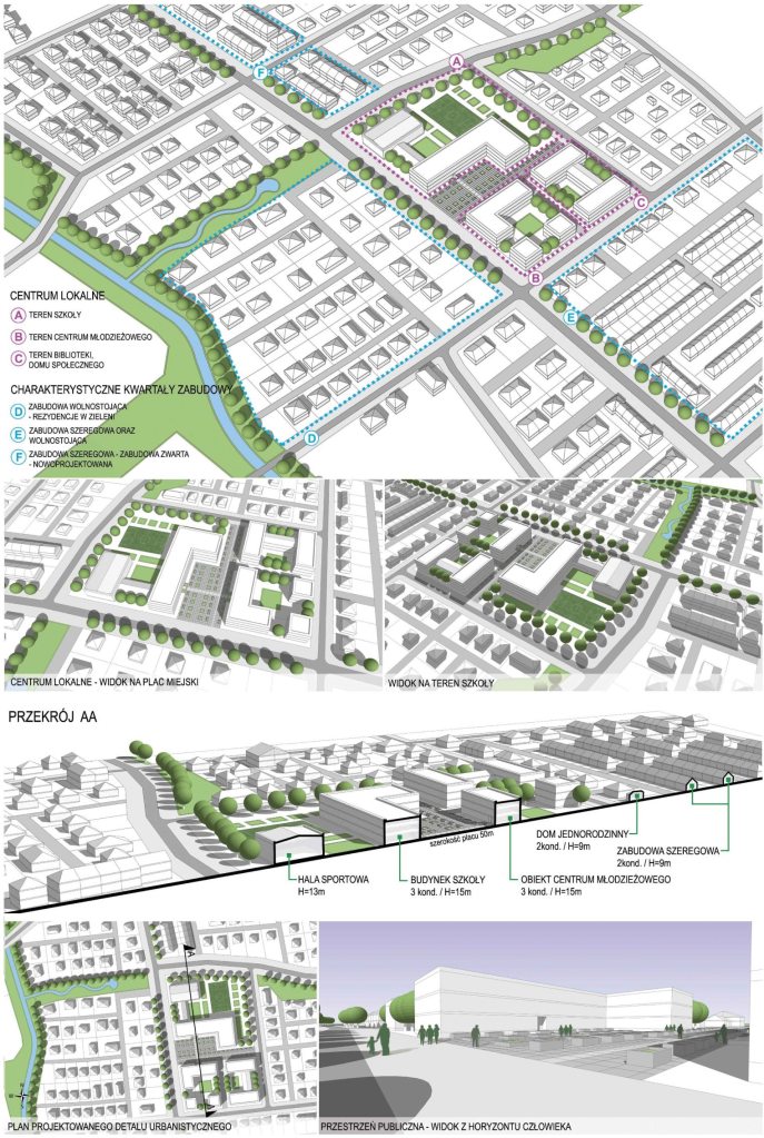 Wybrana koncepcja powstała w wyniku połączeń wstępnych założeń z dokładnym uwzględnieniem stanu istniejącego. Koncepcja wprowadza zabudowę jednorodzinną szeregową jako konsensus między zabudową wielorodzinną o wysokiej intensywności a utworzeniem zielonych enklaw o niskiej intensywności zabudowy.