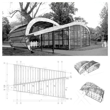 Opracowany projekt jest pawilonem zamkniętym o funkcji wystawowej. Bryła pawilonu posiada środek symetrii. W rzucie są to elementy przypominające trójkąt, natomiast w przekroju estetycznie się zazębiają. Konstrukcja zaprojektowana z drewna klejonego GL40, przeszklenia są wykonane z poliwęglanu, słupy drewniane wzmacniane stalowymi cięgnami. Pawilon składa się z czterech ustrojów ramowo-łukowych, każdy posiada trzy przeguby. W celu … More Pawilon wystawowy – projekt konstrukcyjny