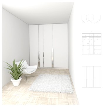 Projekt szafy wnękowej wykonany w kolorystyce bieli z dodatkiem elementów lustrzanych. Inspiracją projektu stanowiły klawisze pianina. Projekt: 2015r.